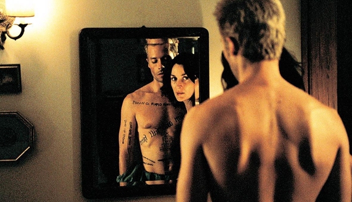 2. 2000年,来到好莱坞发展的诺兰执导并编剧影片《记忆碎片》。该片改编自诺兰弟弟乔纳森·诺兰的短篇小说《死亡象征》,并已经显露出诺兰复杂创作风格,采取彩色和黑白两条主线交错叙述。影片曾获74届奥斯卡奖的最佳电影剧本提名。