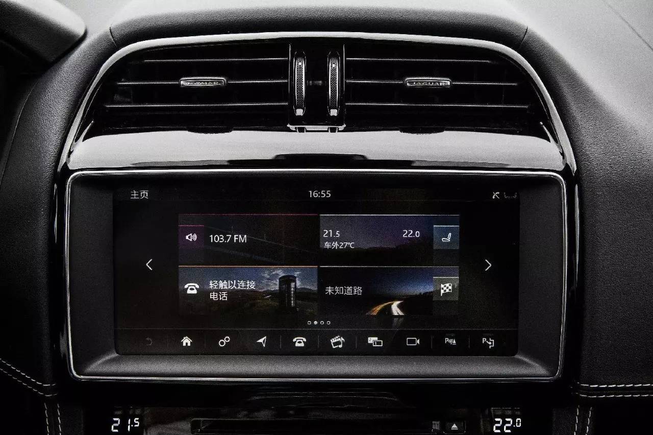 不过相对于更加大胆的外观设计来说,F-PACE在内饰方面的整体设计上还是有些过于规矩了,比如中控对称式设计方方正正,直白点说就是不太匹配这样有个性的产品。10.2寸的中控大屏是整个内饰的核心,然而这个屏幕使用了过去微软采用的贴片式设计,易用性上并不是十分方便,但我比较欣赏的是它能提供一些机械性能的信息反馈。