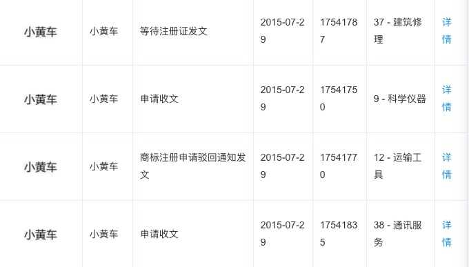 而数人(上海)智能科技有限公司则是一家台港澳法人独资的科技企业,根据界面创业在企查查上获知的资料,该公司主营软件开发、 软件制作、应用服务、智能科技领域内的技术开发等业务,小黄车这一注册商标是该公司于2015年7月29日申请的,但从企查查上的资料可以看出,目前4个商标都还没有处于商标注册申请完成的状态,当然,具体情况还是以法院公布信息为准。