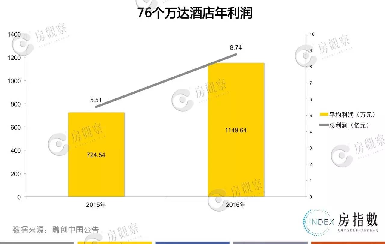 通过融创中国7月10日的公告内容可知,最初的转让协议中,76个万达酒店2015年总利润为5.51亿、2016年为8.74亿,平均单个万达酒店的年盈利能力不到一千万。
