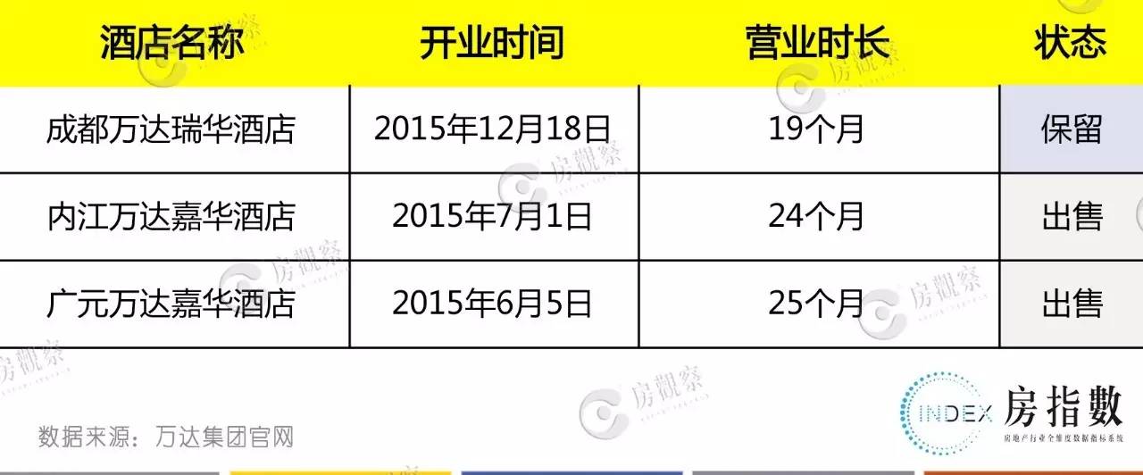 在四川,被万达保留的是成都万达瑞华酒店;而另外2个被出售的酒店情况相似,均是位于地级市万达广场的嘉华系酒店。