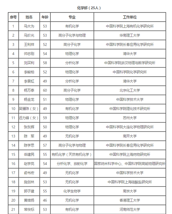 据中科院8月1日发布的公告显示,这次初步候选人共157人,其中数学物理学部23人、化学部25人、生命科学和医学学部32人、地学部27人、信息技术科学部20人、技术科学部30人。另外,候选人中年龄最大的为72岁,年龄最小的为39岁,是清华大学颜宁教授。