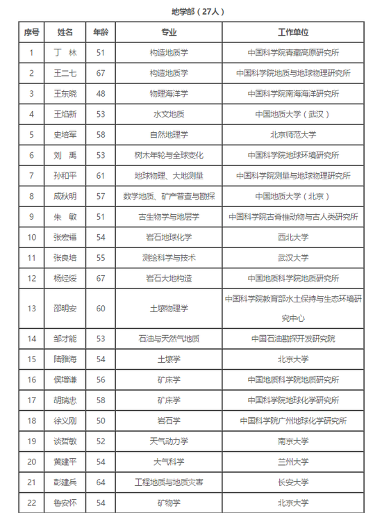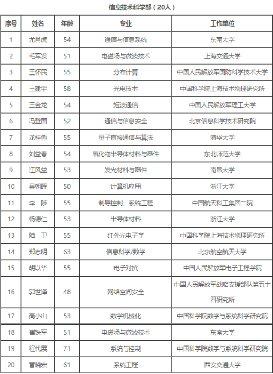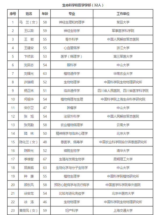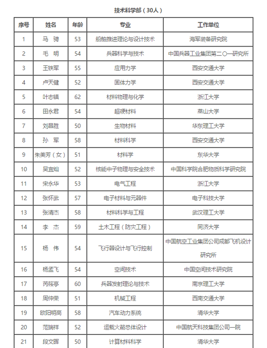 附:2017年中国科学院院士增选初步候选人名单
