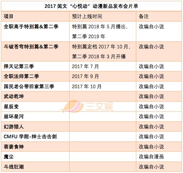 上周六( 7月29日),阅文集团发布了十余部动画新作的消息。