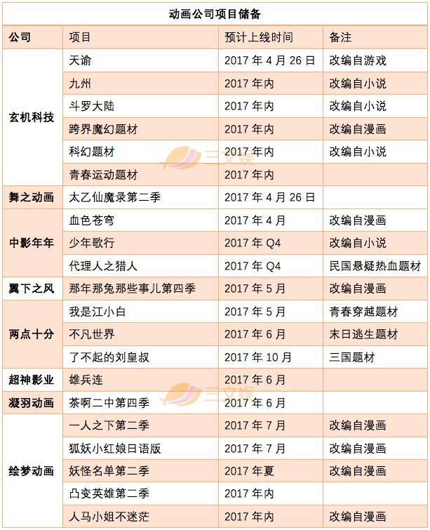 不仅大玩家加码,从三文娱几个月前整理的一份国内各动画公司项目储备片单,可以看到动画公司们也是蓄势待发(部分是与平台合作或承制)。