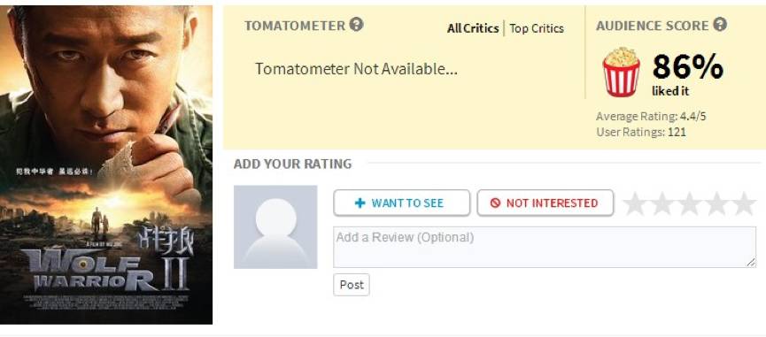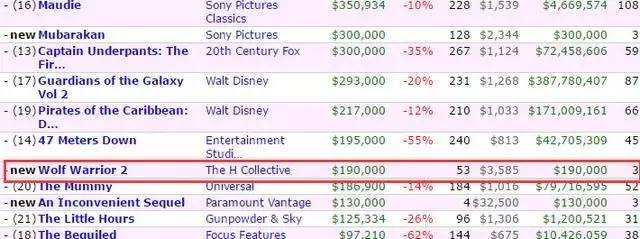 不过,没有普通观众的评论,还是让人难以窥见真实影迷的想法。考虑到《战狼2》本身也没在北美做什么发行努力,这个成绩也就凑合看了。比起上映四周席卷15万美元票房的《建党伟业》,还是进步了不少的。
