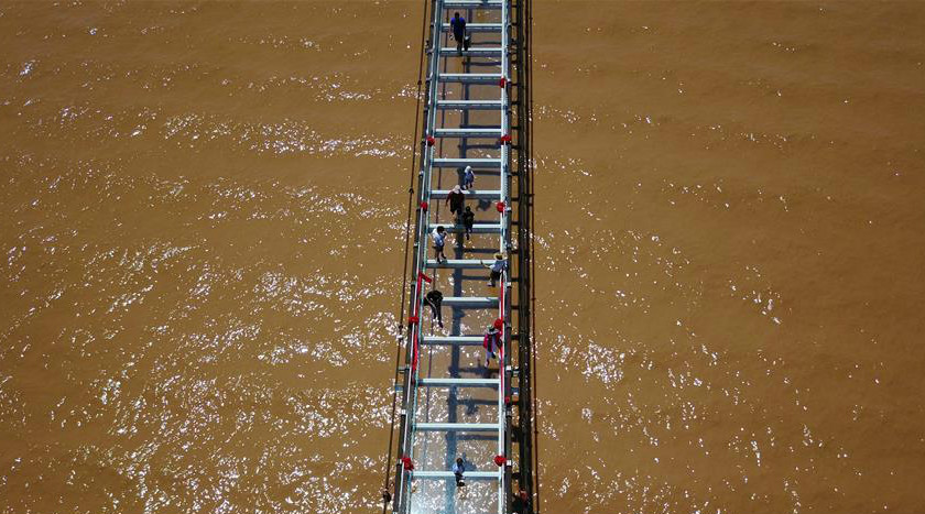 【图集】横跨黄河的透明玻璃桥:全长210米 离地10米高