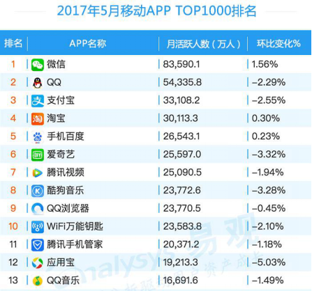 首先看一张数据,这个数据来自猎豹研究院,是2017年5月份所有移动APP的数据排行。拿这个数据就是想告诉大家,几乎所有的头部产品的运营都有内容加入。比如爱奇艺、酷狗音乐、今日头条就是内容型产品。比如微信、QQ,是内容加上社交,应用宝是应用下载+内容,支付宝是支付工具+内容,支付宝的天天有料也逐渐往信息流和内容化上转变。所以内容+已成为各大头部应用抓住用户的一种战略。