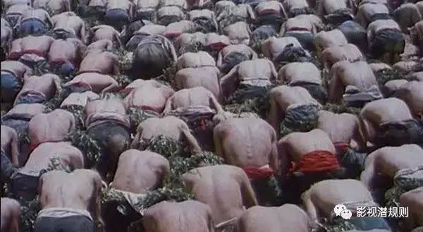 成千上万的陕北人跪在干涸的大地上祈求苍天降下甘露,与婚礼一场非常相似的是,经过几次跪拜后,人群被压抑到画面的最底层而苍天却显得空洞而冷漠。