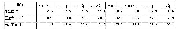 1.社会组织。截至2016年底,全国共有社会组织70.2万个,比上年增长6.0%;吸纳社会各类人员就业763.7万人,比上年增长3.9%。接收各类社会捐赠786.7亿元。全年共查处社会组织违法违规案件2363起,其中取缔非法社会组织16起,行政处罚2347起。