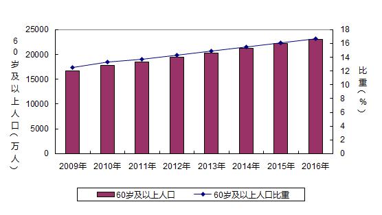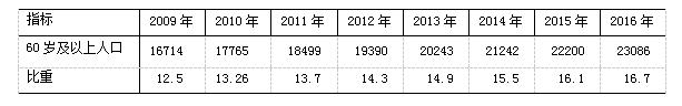 民政部8月3日发布2016年社会服务发展统计公报。公报显示,截至2016年底,全国60岁及以上老年人口23086万人,占总人口的16.7%,其中65岁及以上人口15003万人,占总人口的10.8%。