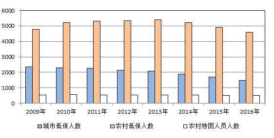 特困人员救助供养。截至2016年底,全国农村特困人员救助供养496.9万人,比上年减少3.9%。全年各级财政共支出农村特困人员救助供养资金228.9亿元,比上年增长9.0%。