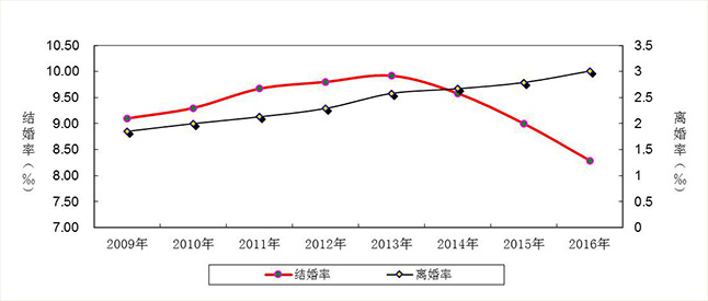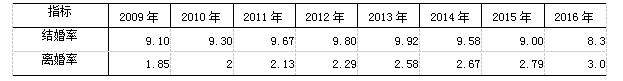 9.结婚率、离婚率指标与2015年公报中粗结婚率、粗离婚率计算方法相同,含义一致。