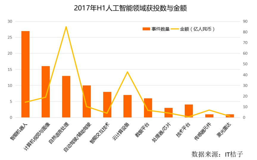 「自然语言处理」投融资金额最高,「智能机器人」获投数量最多
