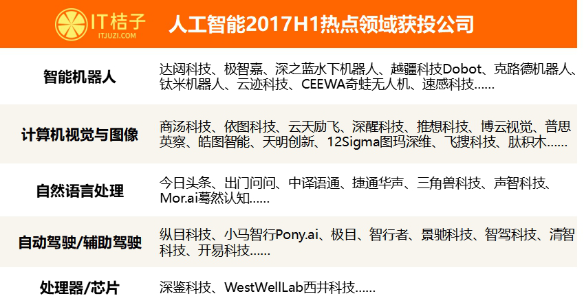 IT桔子最新数据统计,截止于2017年6月底,整个上半年共发生96起人工智能领域获投事件,涉及总金额约193亿人民币,其中包含1起上市事件。