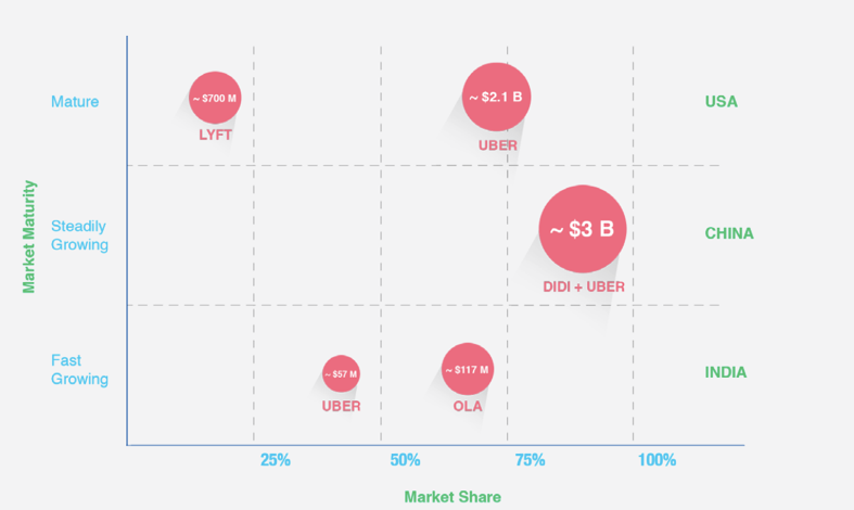 自2014年进入印度市场到现在,Uber已经在印度开通了29个城市,拥有40万名司机,每日乘车量达到80万。今年上半年,Uber App在印度的下载量为1400万次。印度俨然已成Uber继美国之后的第二大市场,占其全球市场份额的12%。目前,Uber市值高达700亿美元。