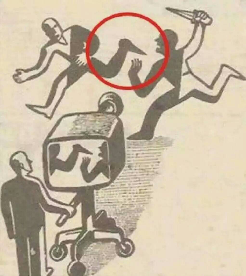 如果你只看镜头里面的图像,会发现是左边的人想要伤害右边的人。但镜头里面的图像只是截取,只反映了画面圆圈的那部分。如果你能够看到全部视角,才会发现,原来事实恰恰相反。
