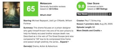 到第四季,只有区区五家媒体给《越狱》打了分,平均分仅为61分。