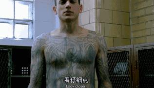 其次就是它的悬疑感是巨大的,为什么纹身?为什么故意抢银行不辩护要入狱?当疑惑的观众看到他在哥哥面前脱光上衣解释一切的那一刻,所有人的想法都是一样的,把监狱图以纹身的形式在身上,多么绝妙的想法呀,