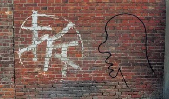 在张大力看来,在不顾一切追求所谓的现代化、全球化的过程中,城市的灵魂被彻底遗落了,“就好像一个典雅的女人被强迫做了隆胸和丰臀手术”,张大力说。他在城市废墟上行走,边走边画,在他看来,这些残破的墙体有如“反映城市变化的一块银幕”。在拆迁队刷的”拆“字旁边喷上一个人头,又或是在已经存在的涂鸦旁边刷上一个”拆“字,两个符号好像互相对峙,又似乎形成了某种对话,这也是《对话与拆》系列题目的来源。