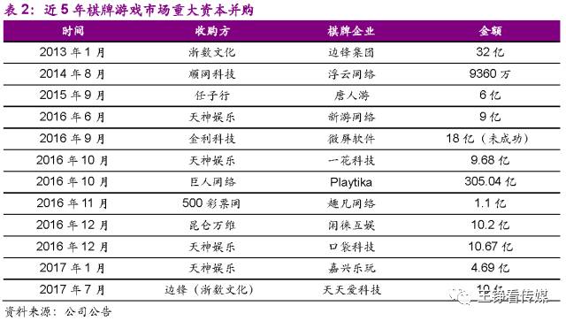 从2016年下半年开始,越来越多的游戏企业在通过收购、并购的方式将地方性棋牌游戏纳入自己的经营版图。地方棋牌的独特用户群体,具有巨大的盈利潜力,吸引了大量资本涌入棋牌游戏行业。