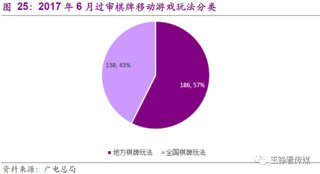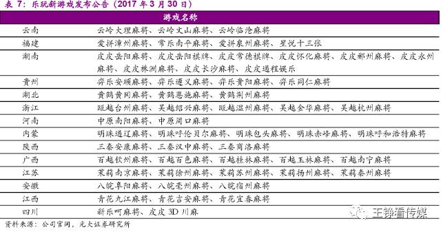 棋牌类移动游戏与其他电子游戏的核心区别在于,移动棋牌游戏的发展是从线下到线上的过程,且不同地区对棋牌种类、规则的偏好也不同。线下棋牌有数百种地方性玩法,目前众多棋牌玩家在线下棋牌室或者聚会时玩的还是以本地棋牌品类为主。移动棋牌游戏市场供给仍然存在空间,我们认为地方棋牌在2017年下半年可维持圈地式增长。
