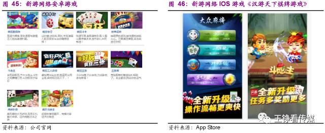 (a) 新游网络是在线棋牌类游戏开发商及平台运营商,专注以在线棋牌类游戏为主的互联网游戏研发以及平台运营。公司的游戏平台主要是PC端的汉游天下和悠洋棋牌,其中汉游天下为自主平台,悠洋棋牌是与百度合作第三方联运平台。全平台目前提供二十余款在线网络游戏。