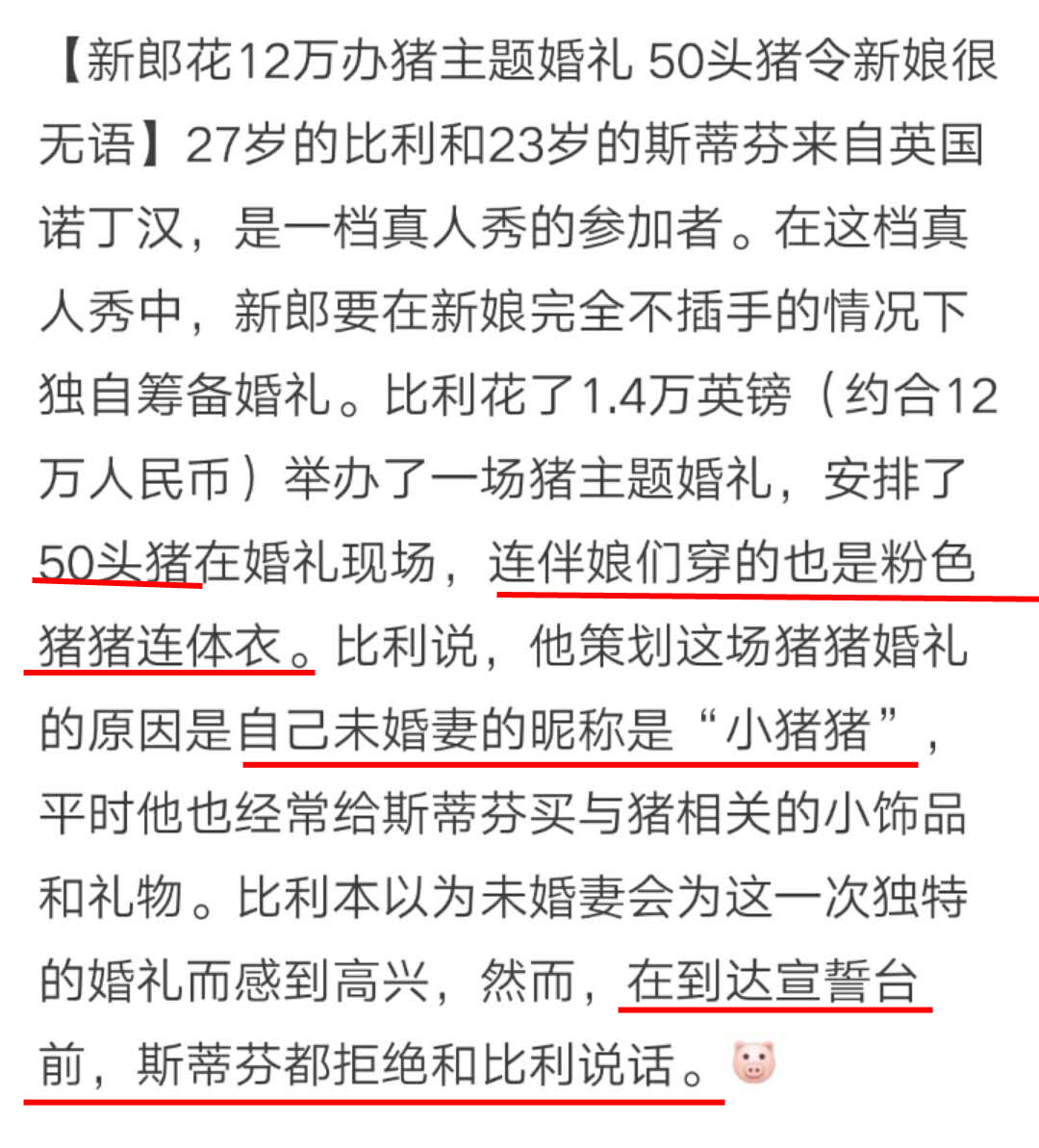 新郎花12万办猪主题婚礼 50头猪令新娘无语