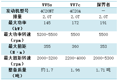 VV5s和VV7c都搭载长城以“4C20”编号开头的2.0T发动机,但VV5s的功率明显更低,扭矩倒是没有降低太多。爆发点上,VV5s的发动机来得更早一些。