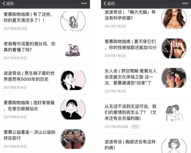 对于品牌公众号来说,粉丝的来源除了品牌会员线下绑定外,另外就是对账号调性和内容本身比较关注的用户了,他们都是和这个账号描绘的画像相吻合的一批人。共鸣是产生互动和联系的基础,而这个连接点就是内容,爱慕希望给用户带去的是轻松且有意义的内容。