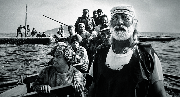 清晨的渔船船员,他们一直在等待金枪鱼群的到达,海流变得有利时,船员就可以趁机整理渔网系统。