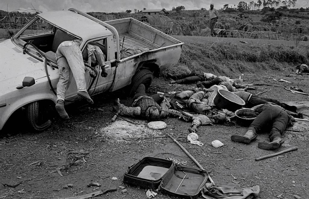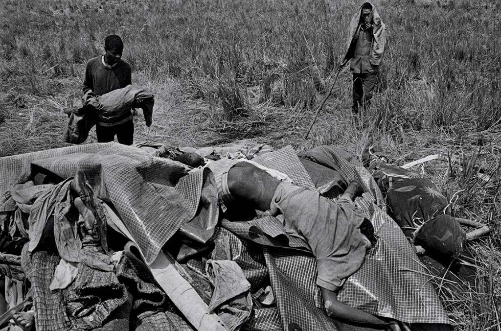 994年,卢旺达总统的专机,被导弹击落。卢旺达境内乱成了一锅粥,胡图族人对图西族人展开了血腥屠杀。80-100万人死亡,死亡人数占当时世界总人口1/5000以上。下图是一颗手榴弹爆炸后的场景,没被炸死的,也会被乱刀砍死。