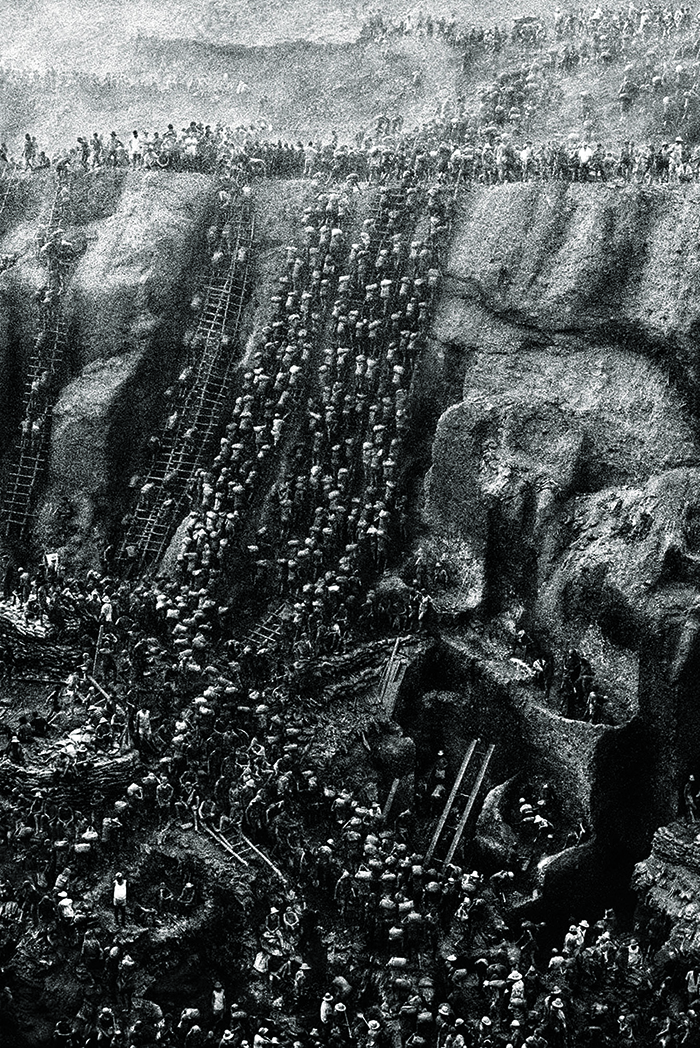 在萨尔加多27岁时,他最终放弃了经济学工作,成为了全职摄影师。因为记录萨尔加多而成为新闻摄影的标杆。在这幅照片中,一个巨大的坑穴式矿井,满是人类的躯体,从头到脚沾满了泥浆。这种乱作一团的工作方式,在这里,矿砂完全靠5万多个工人用手挖出。出于对人类体验的兴趣,萨尔加多开始在《劳动者》系列中探索劳动的主题,着眼于为农业、食品、矿产、石油和建筑行业全身心投入的男性和女性。“萨尔加多揭示了劳动世界的痛苦、美丽和残酷”,作者亚瑟·米勒如此评价这一系列创作。