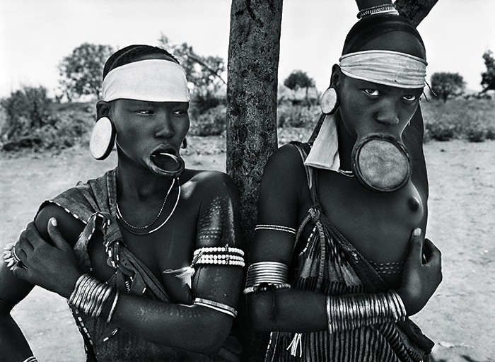 穆尔西族和苏尔玛族的妇女是目前世上唯一仍旧配戴唇盘的女性。埃塞俄比亚,金卡附近,穆尔西部落。