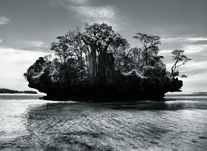 马达加斯加海湾的猴面包树,小岛在海面上十分孤立,而面包树屹立在岛上,显得十分特别,西印度洋。