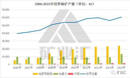 但中国铀矿资源并不丰富,2015年我国铀矿消耗量为6 296 t,而全年我们国家铀矿总产量仅为1616t,对外依赖度超过70 %,供求矛盾突出。