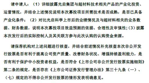 “超材料”的前瞻性、定增方案涉及实控人变更等问题,引来监管的关注。