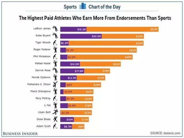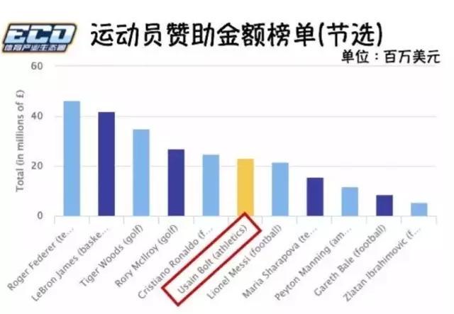 在这份“代言比赛场赚钱多”2016排行榜上,博尔特排在李娜下面——但他也是赛场收入最少的一位