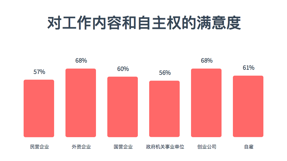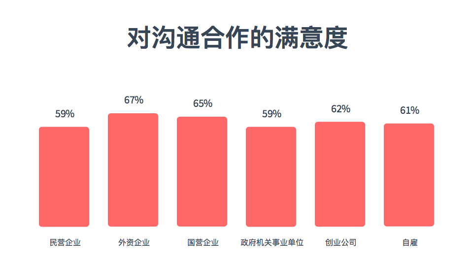 另外,近六成外企员工期望能够进行远程办公,该比例甚至比“以全世界为办公室”的自雇员工还要高。看来,虽然外企的办公室福利通常好得没话说,但员工们还是希望能有更灵活的办公制度,而不用天天被束缚在办公室里。