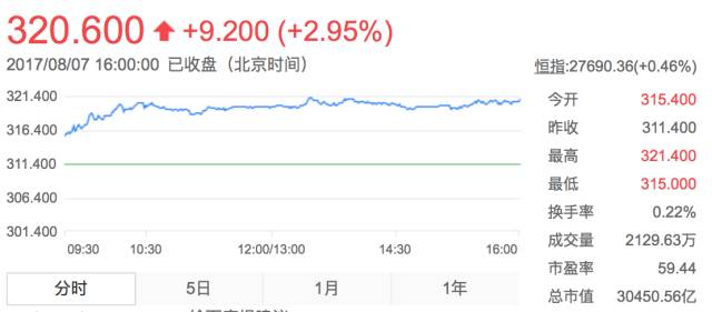 数据显示,近半年时间,腾讯控股股价从年初的190港元上涨到如今的320港元,累计涨幅为66%。