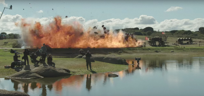 最艰难的地方在于,把握好时机,确保不同的马车依次燃爆,而非同时发生。后期制作将画面中的火焰制作得更为壮观。