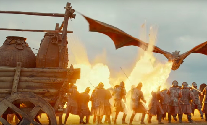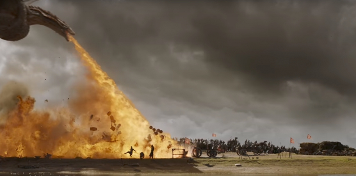 巨龙不仅点燃了战利品,它还将兰尼斯特的军队烧成了碎片。