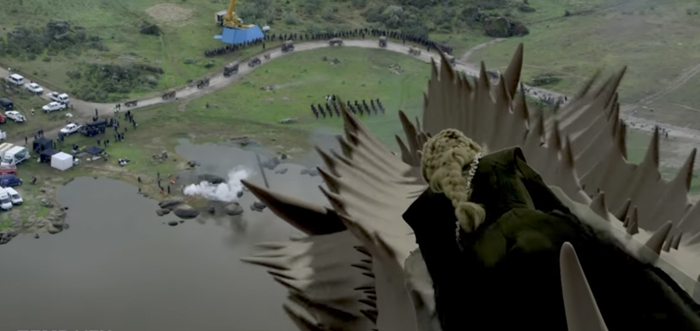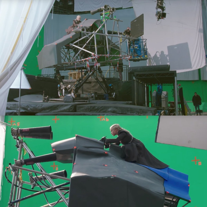 3. 而丹妮莉丝骑着龙的大部分场景,很显然并不是真实画面。