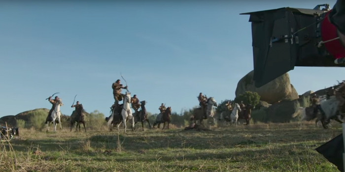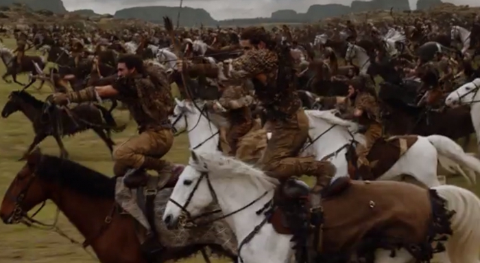 6. 多斯拉克人站上马背射箭的场景,也不是特效制作的画面。