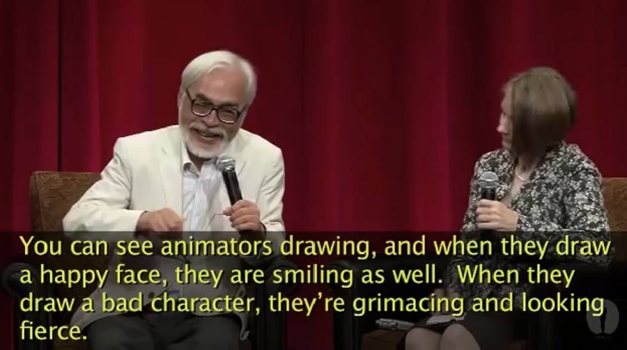 “你看动画师作画,当他们在画一张高兴的脸时,他们自己也是笑着的。可是当他们在画一个反派人物时,他们的表情也变得凶狠残忍起来。”