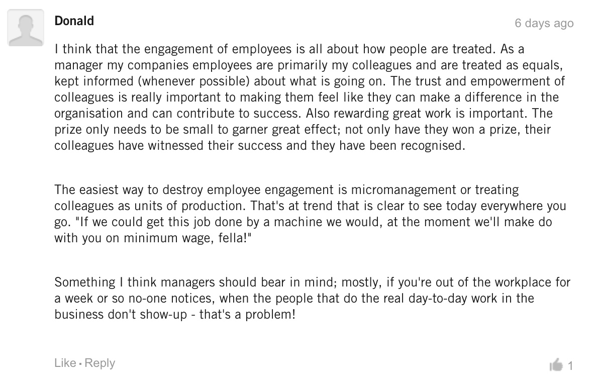 员工敬业度为什么那么低?在哈佛商学院网站上,读者各抒己见: