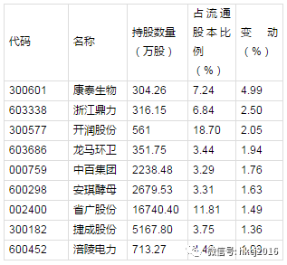表1:二季度社保基金增仓比例超过1%的公司