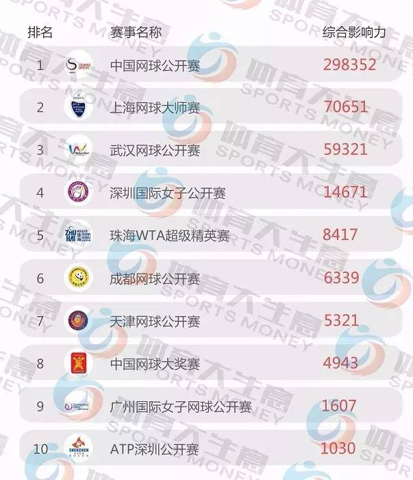 近年来国内职业网球赛事井喷爆发,ATP与WTA除大满贯外的各级赛事均已落户中国。北上广深之中,深圳有三项赛事上榜,可谓“网球之城”。武汉、成都、天津、珠海各有赛事入围,网球种子已散播全国。