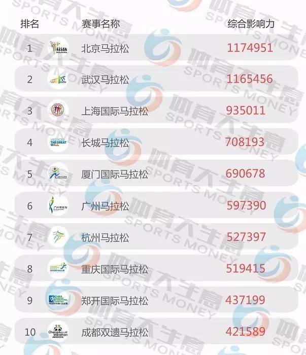 尽管马拉松圈子中还没出现千万级别的赛事,但影响指数达到十万级别的赛事超过20项,项目的综合影响力无出其右。上榜赛事影响指数悉数突破40万,足见跑者的热度。2016年各项马拉松赛事超过300场,2017年有望突破500场,这种爆发式全面增长,在国内没有项目能望其项背。