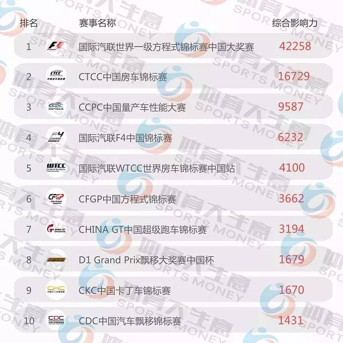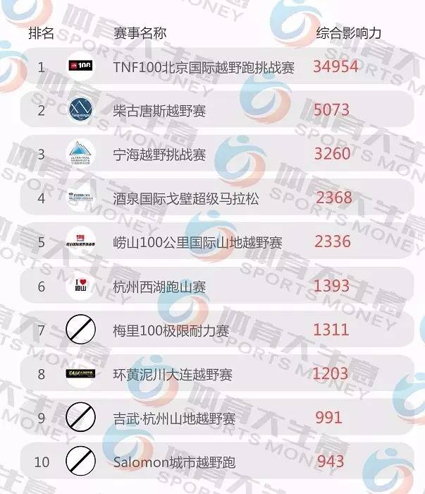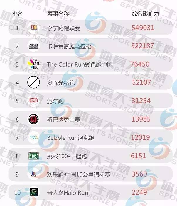 影响力榜中选取十个项目重点考察,综合考虑了项目自身的影响力、相关商业赛事的发达程度以及该项目当下的话题性。《2016中国赛事影响指数排行榜》所考察的十个项目分别是足球、篮球、赛车、网球、搏击、马拉松、越野跑、轻路跑、自行车、电子竞技。榜单中收录每个项目影响值前十的赛事,最终得出“2016百大影响力赛事”。